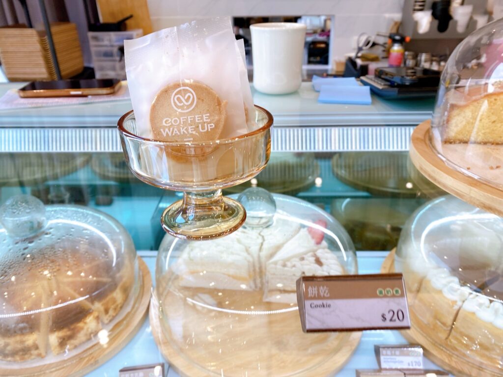 點餐櫃檯的左手邊還有一個蛋糕櫃,如果想吃甜點可以直接挑選喜歡的蛋糕。除了蛋糕,櫃檯旁也有一片片軟餅乾,想搭配咖啡小點心也很方便。