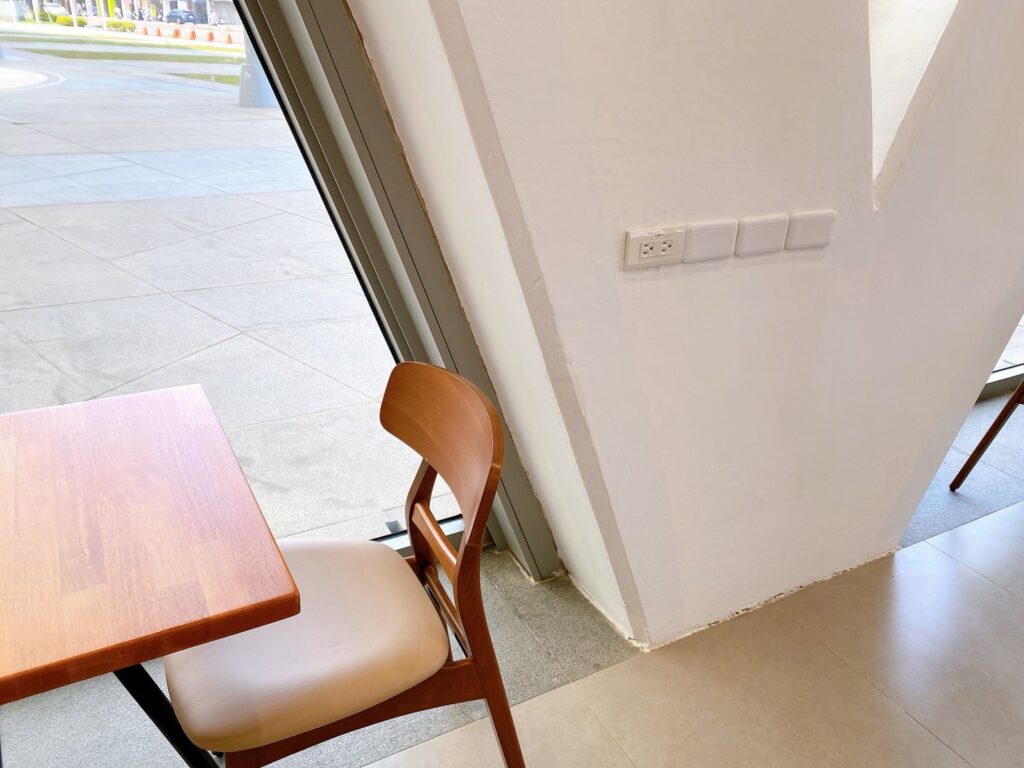 店內提供插座的座位不算多,我當天大概數了一下,只有四個位置有插座。如果需要用到電源,建議可以選靠窗或靠牆的座位,比較方便充電。